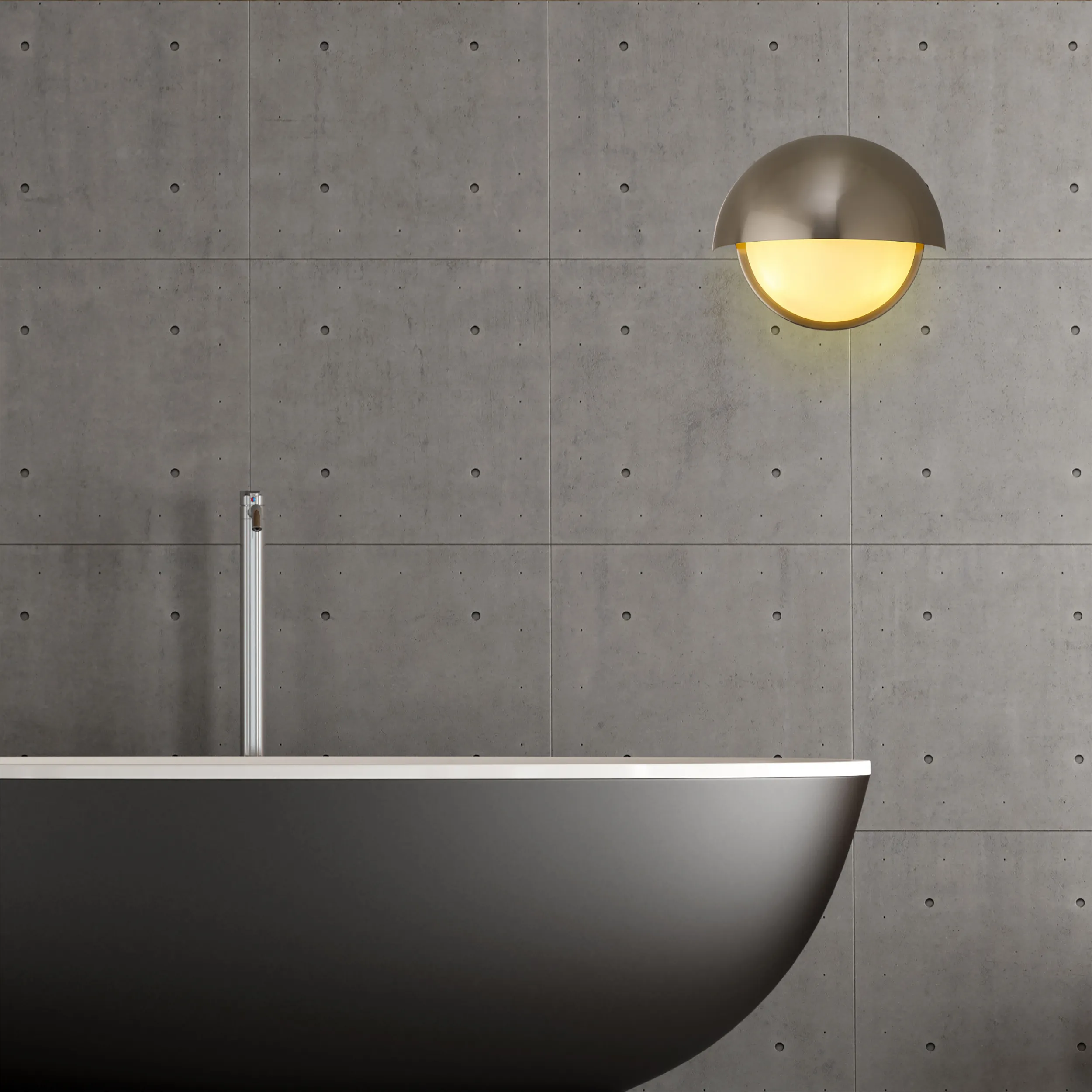 This is a creative collection of E14 wall lights. A metal semi-circular over-hang offers both functionality and individuality to this IP54 rated series. Two E14 lamp holders are housed beneath this in a smaller opal glass diffuser. Available in seven colour finishes this fixture will add illuminating character to any given setting.