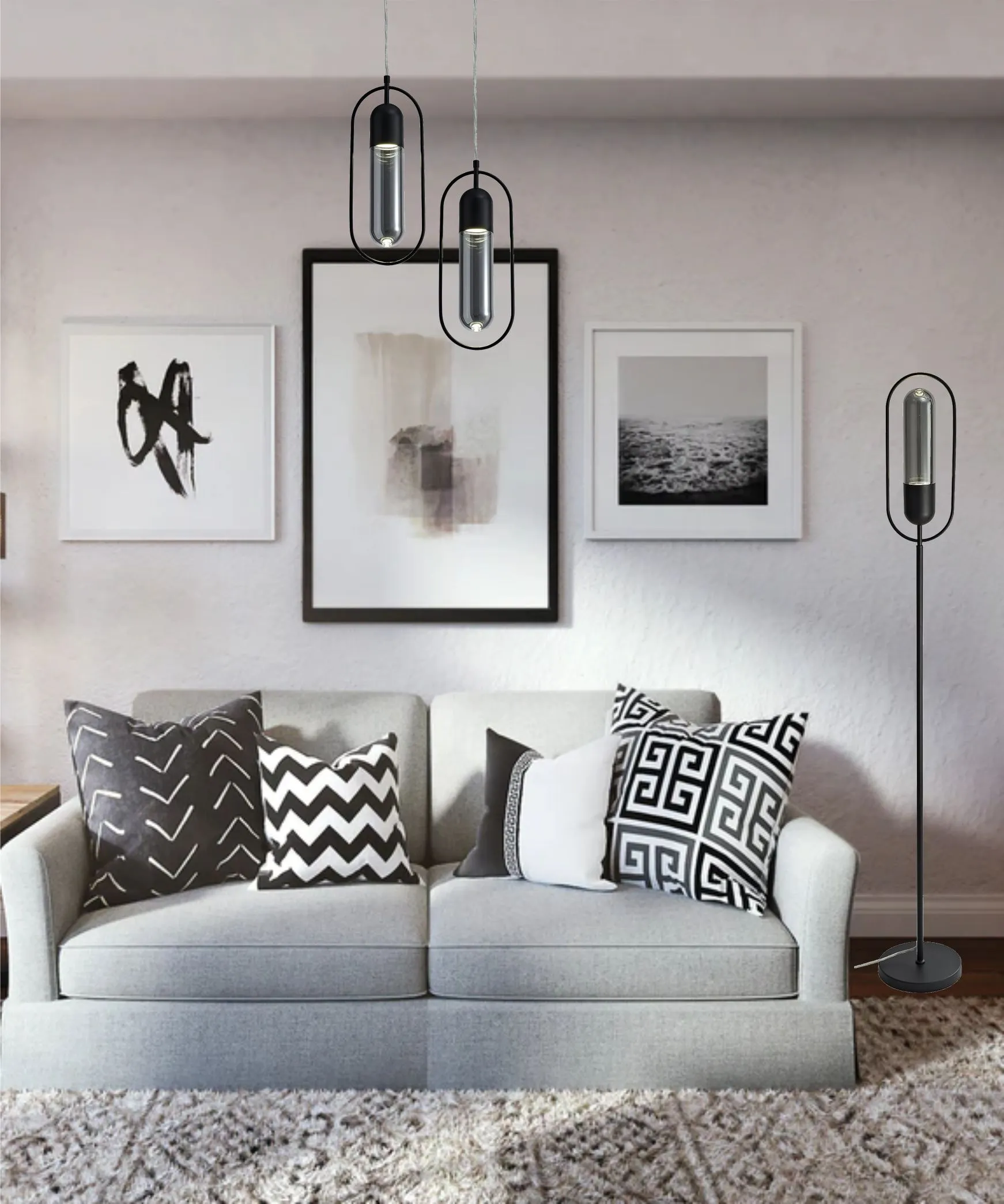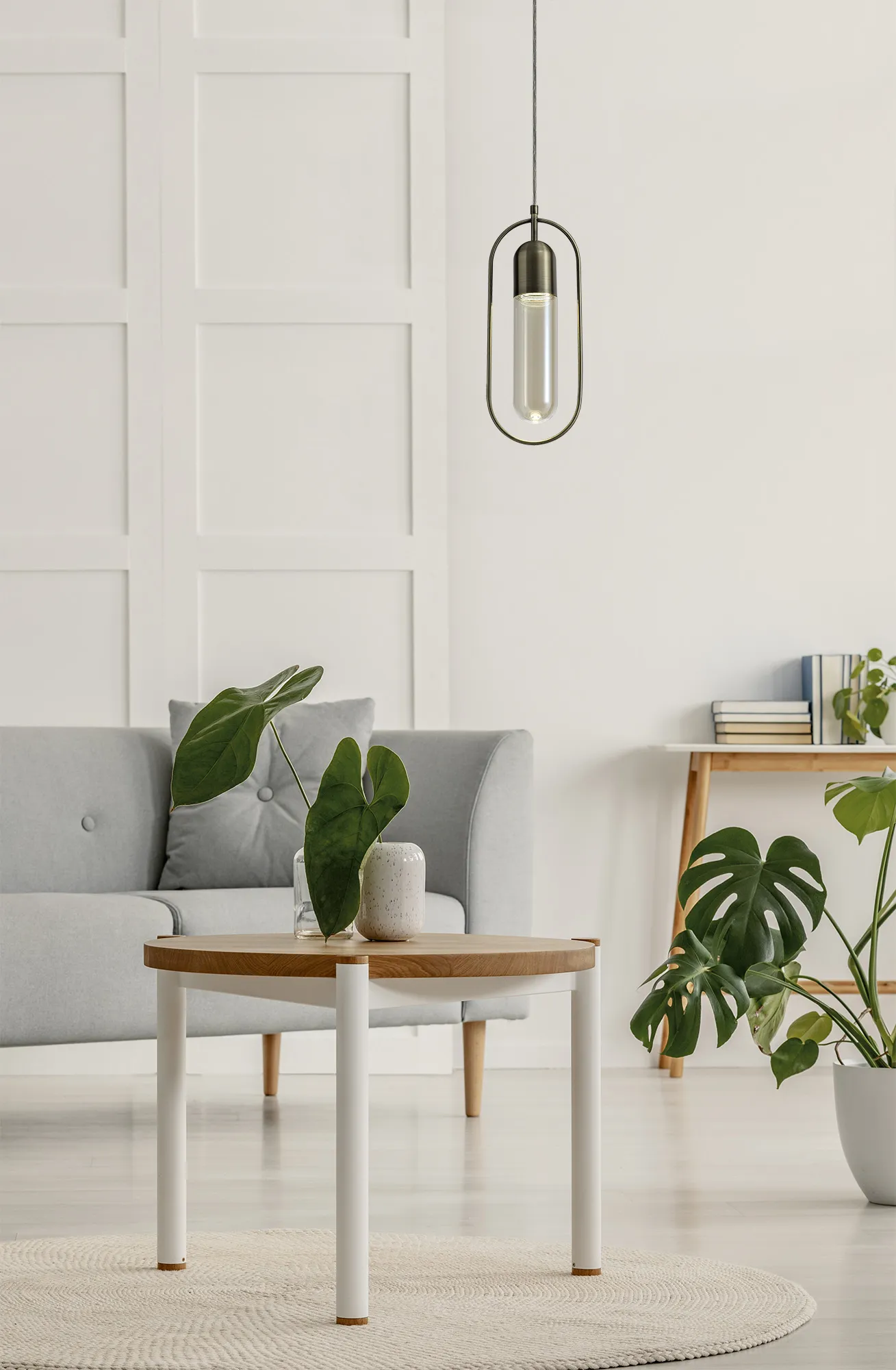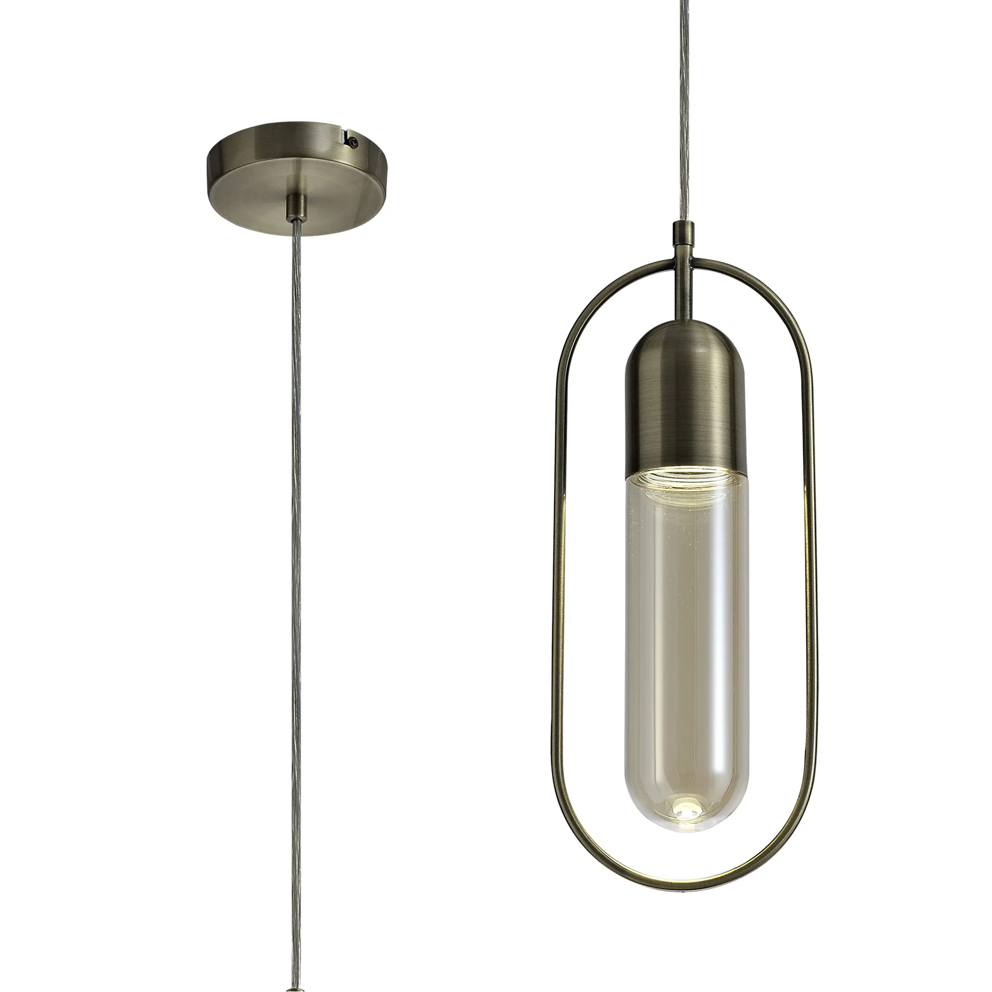 Cardrona economically uses minimal metalwork to structure its frame whilst still providing an interesting decorative form. The long capsule glass holding the integral 4000K LEDs are encircled by a slim single frame ring, intelligently producing a modern design feature with few materials. Adding further character, the glass is tinted to reflect the finish of the frames; antique brass with amber glass, satin nickel with clear and black with smoked glass. A single pendant, table and floor lamp make a small family of lighting solutions which can be seamlessly used within one room setting.