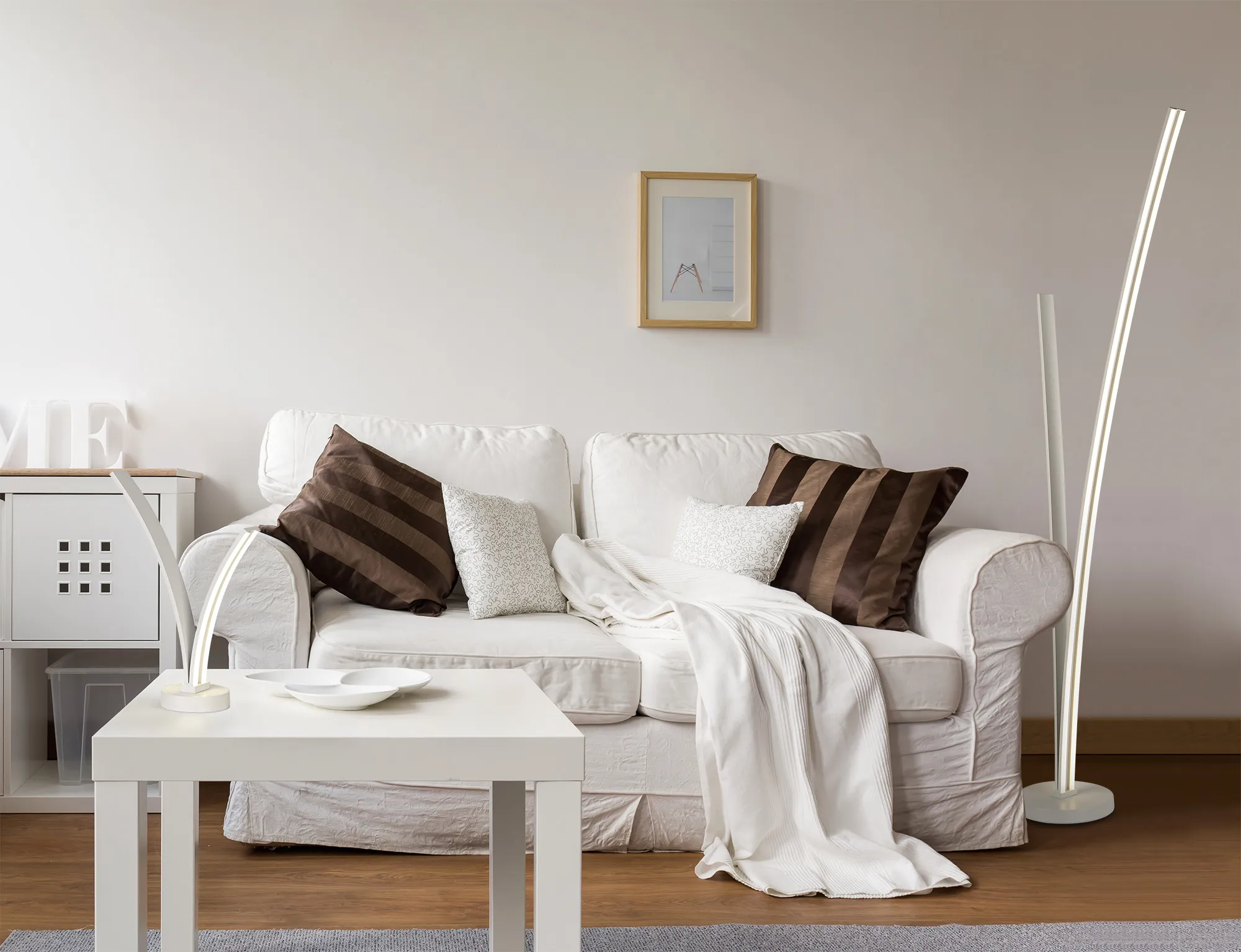 This visually intriguing collection of fixtures hosts slim, double narrow strips of smooth diffused light. A line of white framework runs along the middle of each wave like arm that are mounted on complementing satin gold or white bases. A colour temperature of 3500K on the satin gold frame and 4000K on the white frame. The intertwining arms create a design aspect with aesthetic impact thus furthering the attractive nature of this range.
