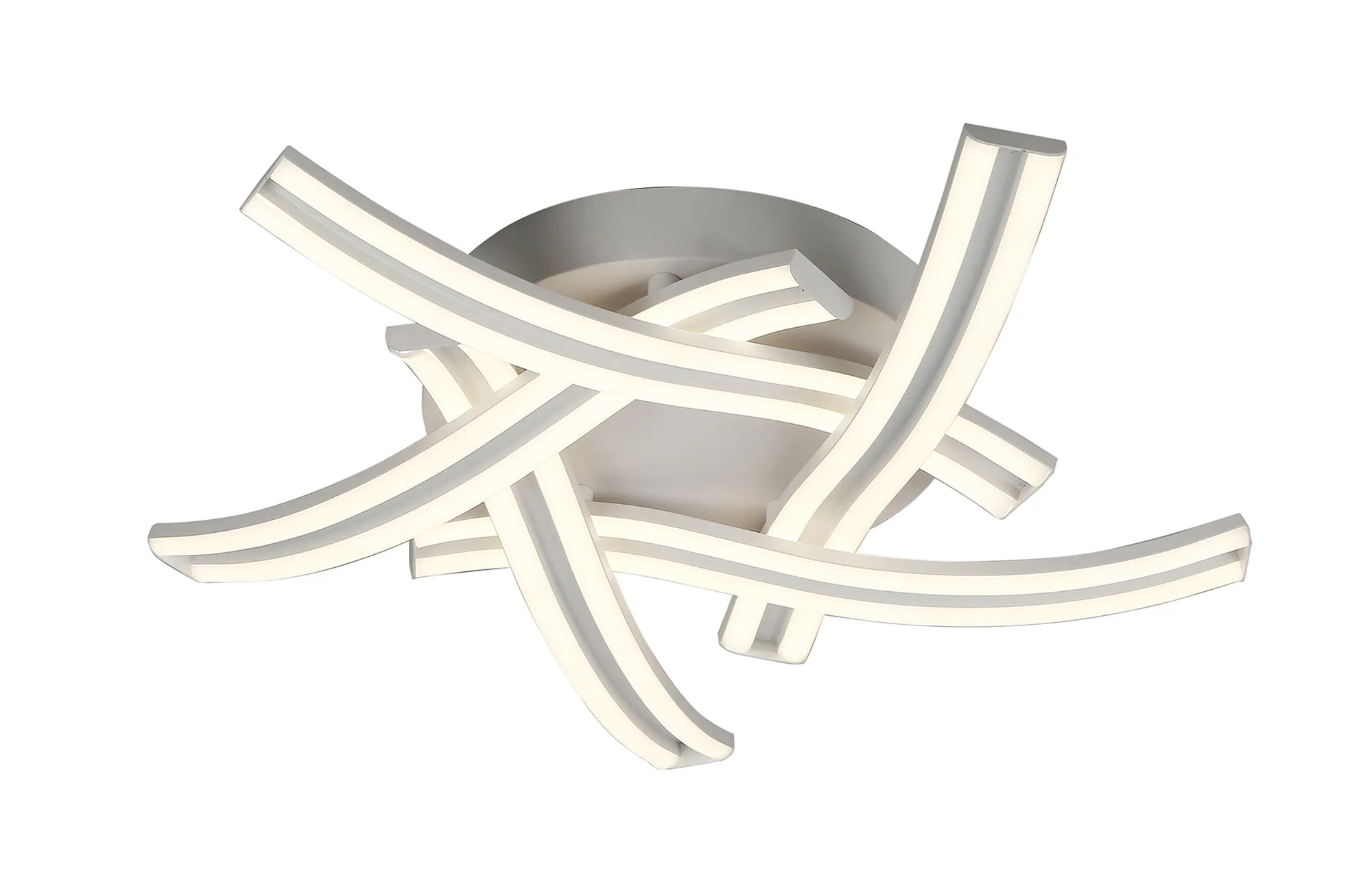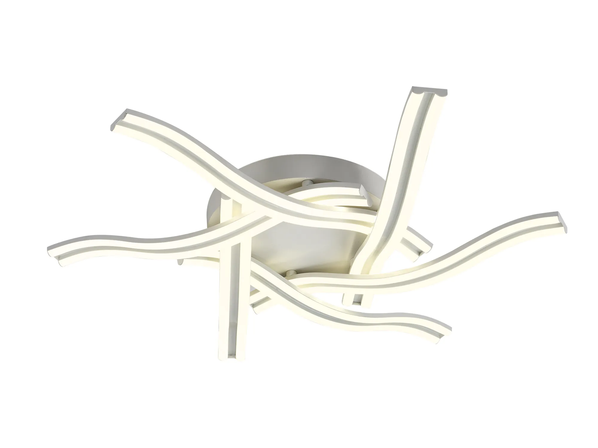 A visually intriguing collection, Collingwood's ceiling fixtures host slim, narrow strips of diffused light. A line of white or satin gold frame running along the middle of each piece creates an aesthetic impact furthering the waved design aspect. A colour temperature of 3500K on the satin gold frame and 4000K on the white frame. The two light ceiling fixture and wall lamp offer a streamlined linear option whereas the three, five and six light overlap the arms to form a more circular pattern with the six light also including a three step dimming function. This collection also includes a matching table and floor lamp.