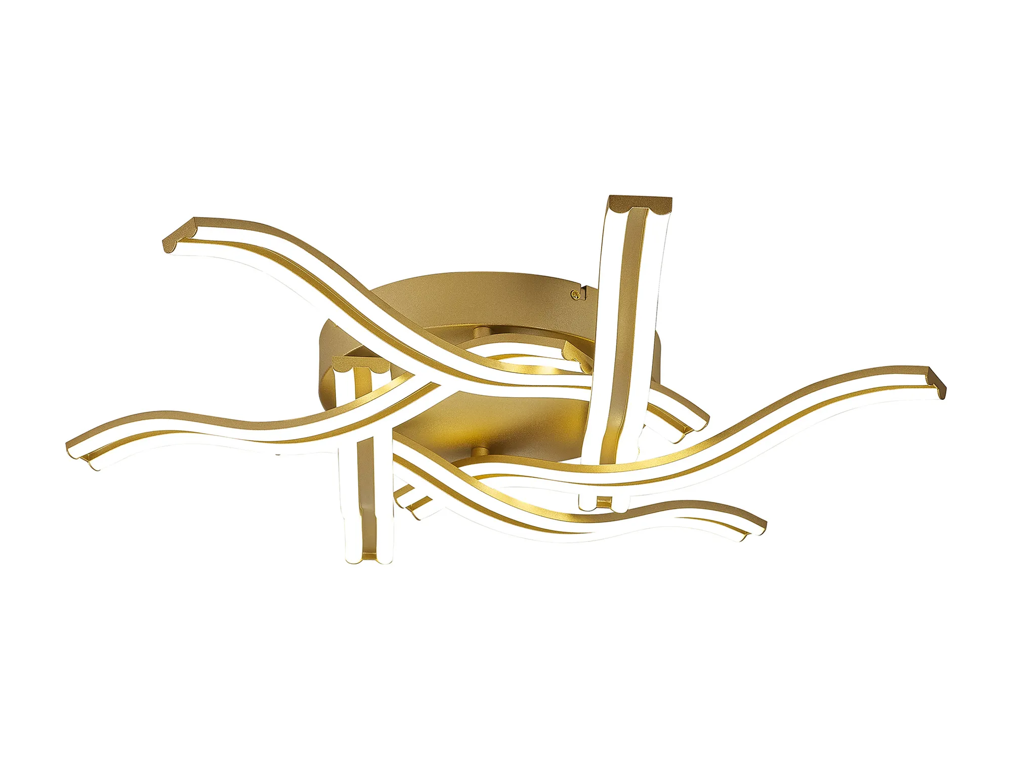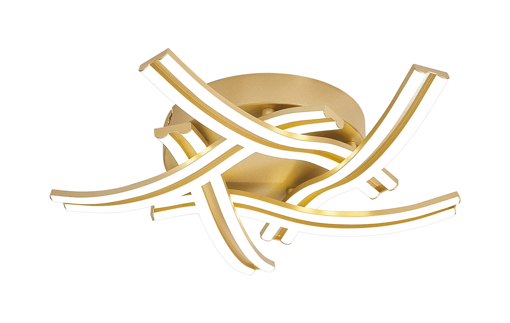 This visually intriguing collection of fixtures hosts slim, double narrow strips of smooth diffused light. A line of white framework runs along the middle of each wave like arm that are mounted on complementing satin gold or white bases. A colour temperature of 3500K on the satin gold frame and 4000K on the white frame. The intertwining arms create a design aspect with aesthetic impact thus furthering the attractive nature of this range.