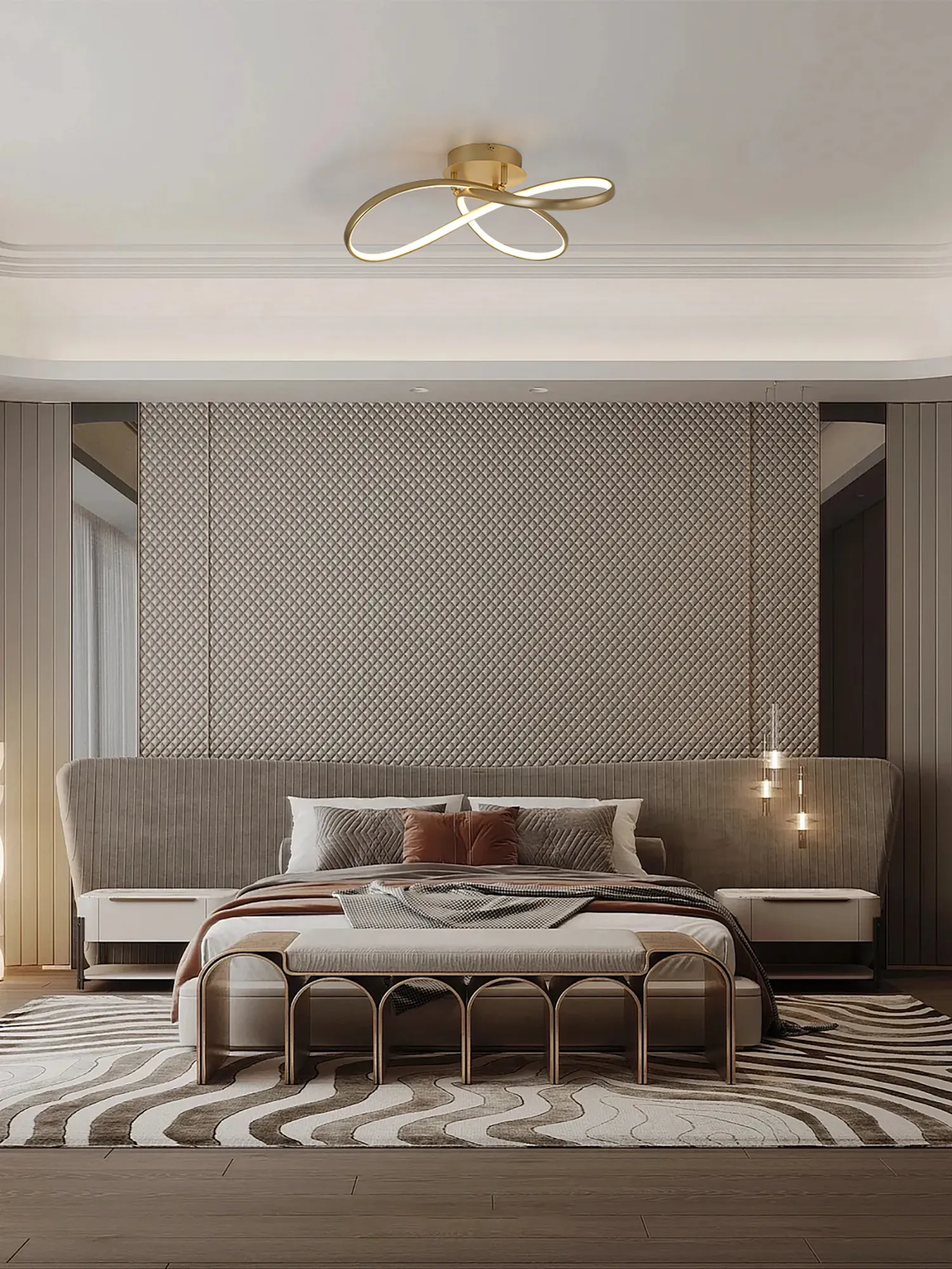 Cranbrook Triac Dimmable Looped Spiral Pendant, 71W LED, 3000K, Champagne Gold