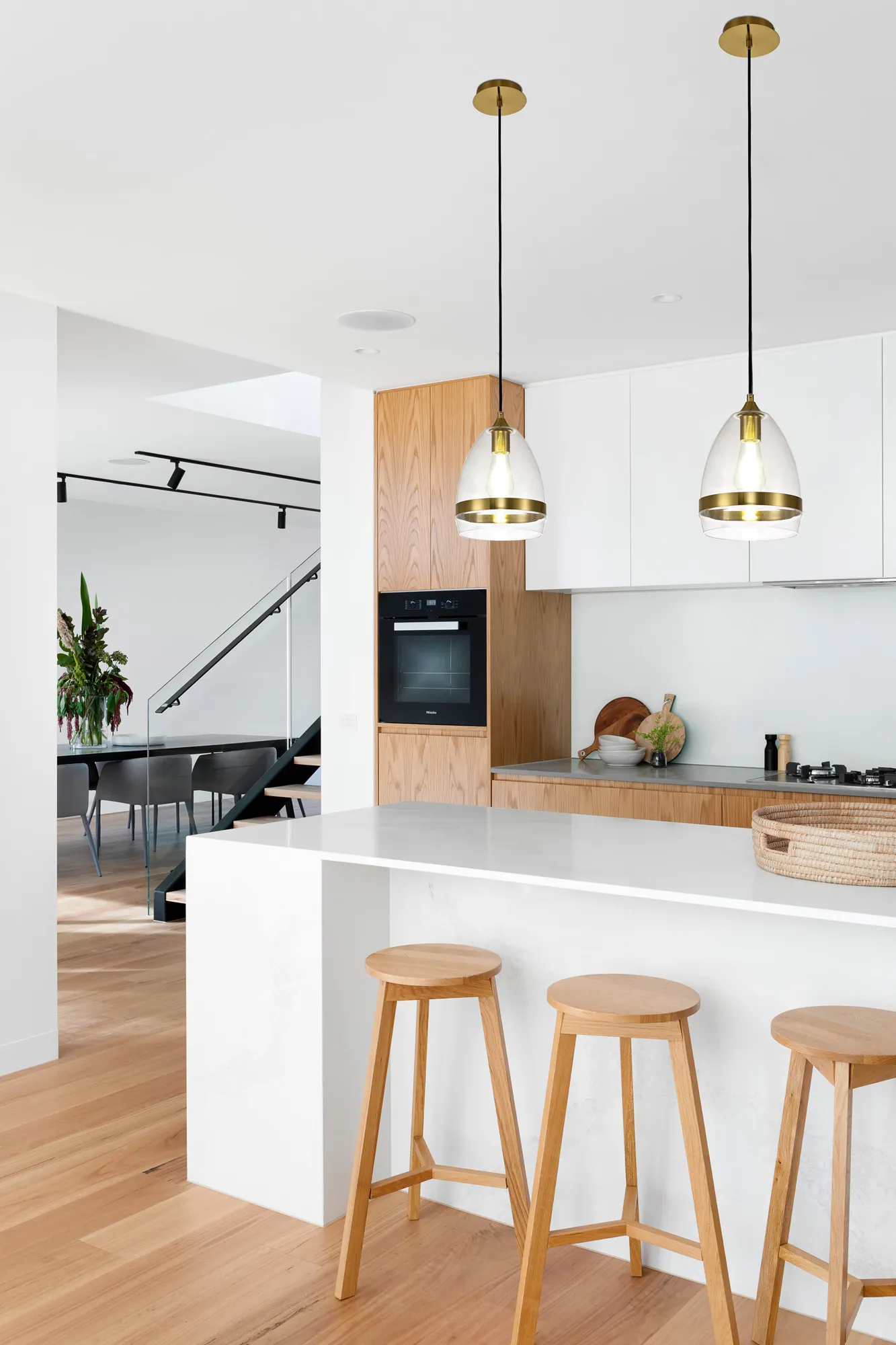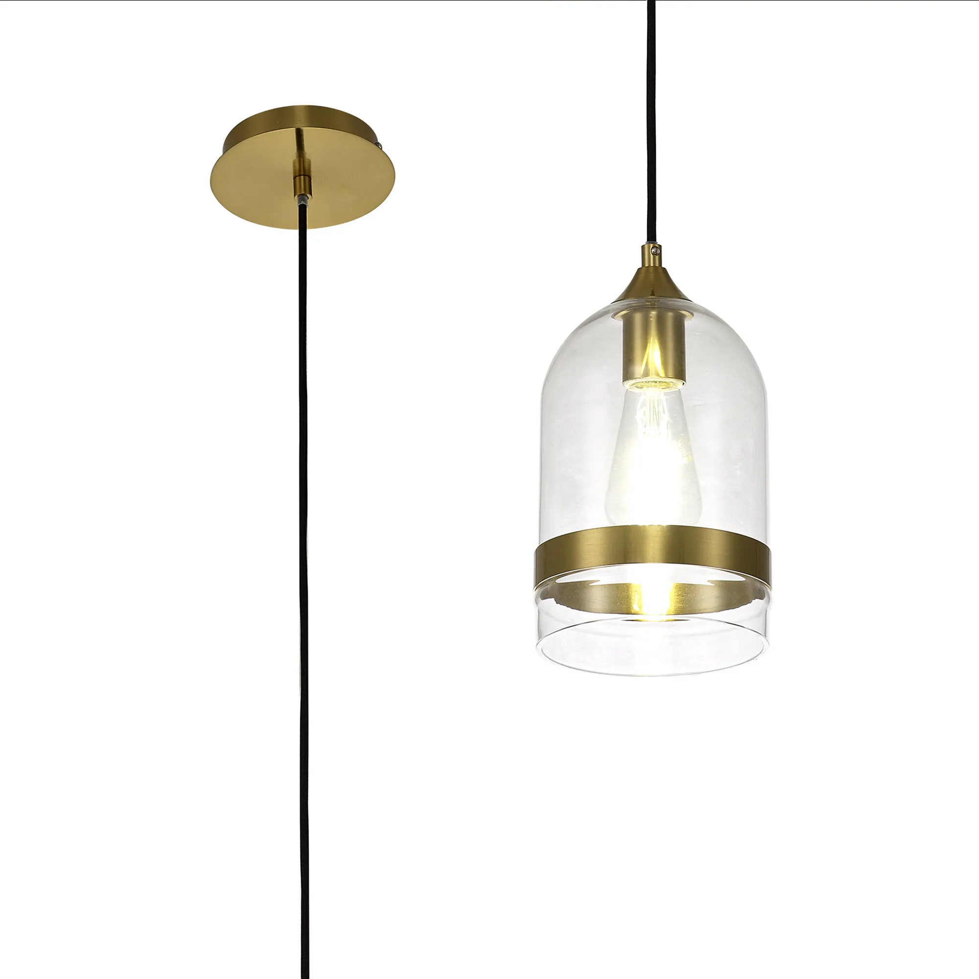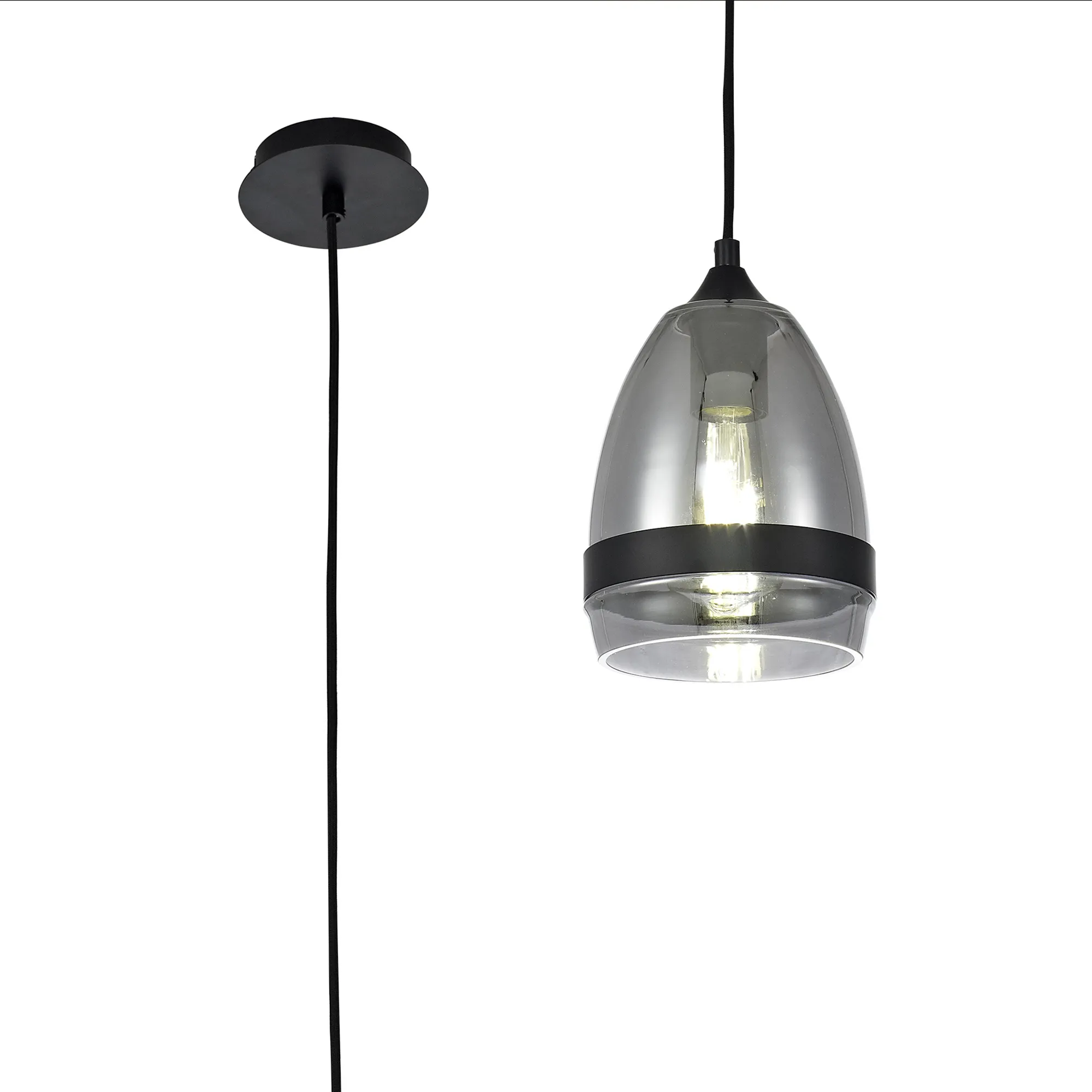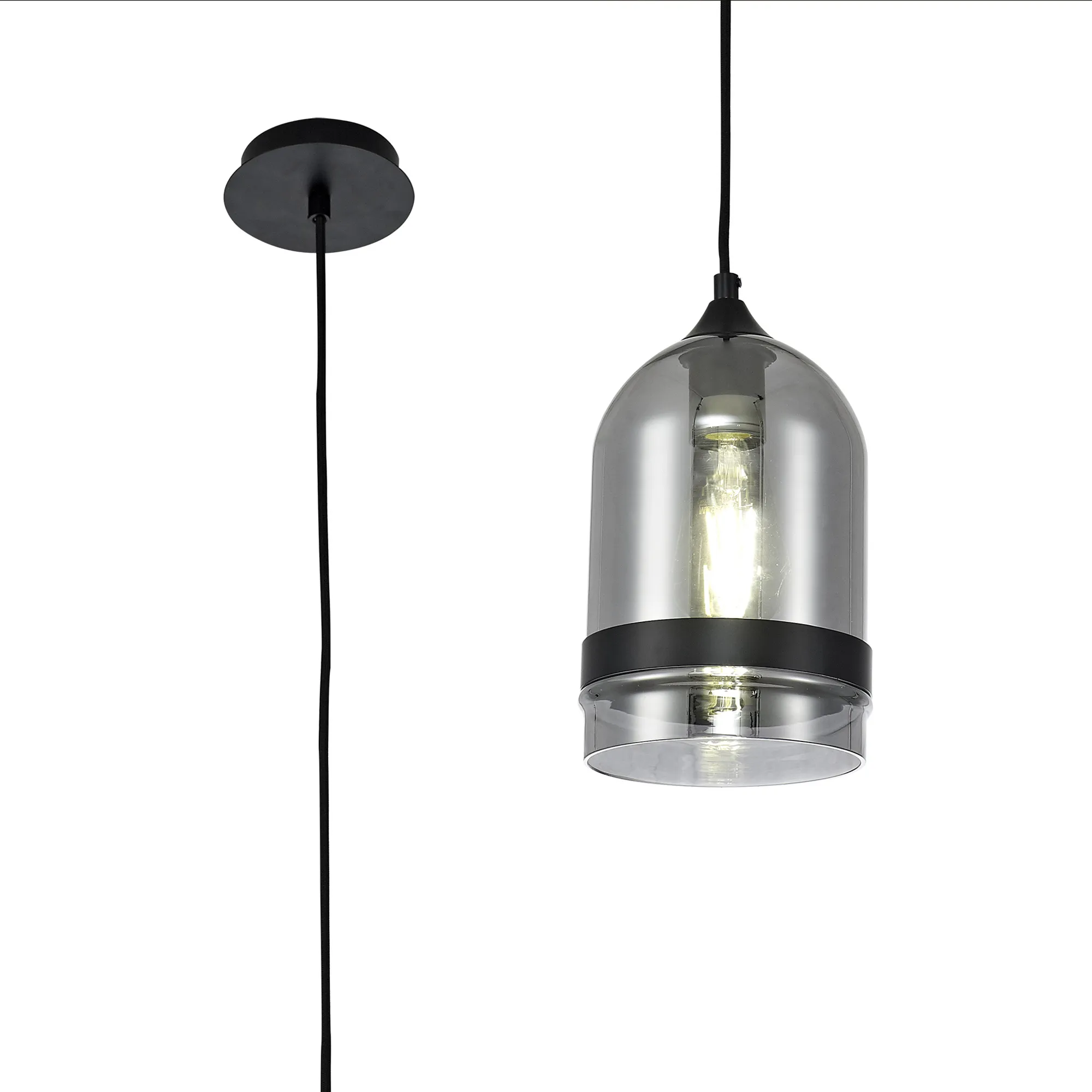 Hunter is an effortlessly stylish collection of single pendants. The sleek cone or dome shape glass used as a shade around the E27 lamp holders, is decorated with a single band of metal in the same colour finish as the framework for a cohesive character. The aged brass finish is paired with a clear glass and the matt black with smoke plated for a more modern option. These pendants are attractive as a lone feature or could be used in the same area for a grander display.