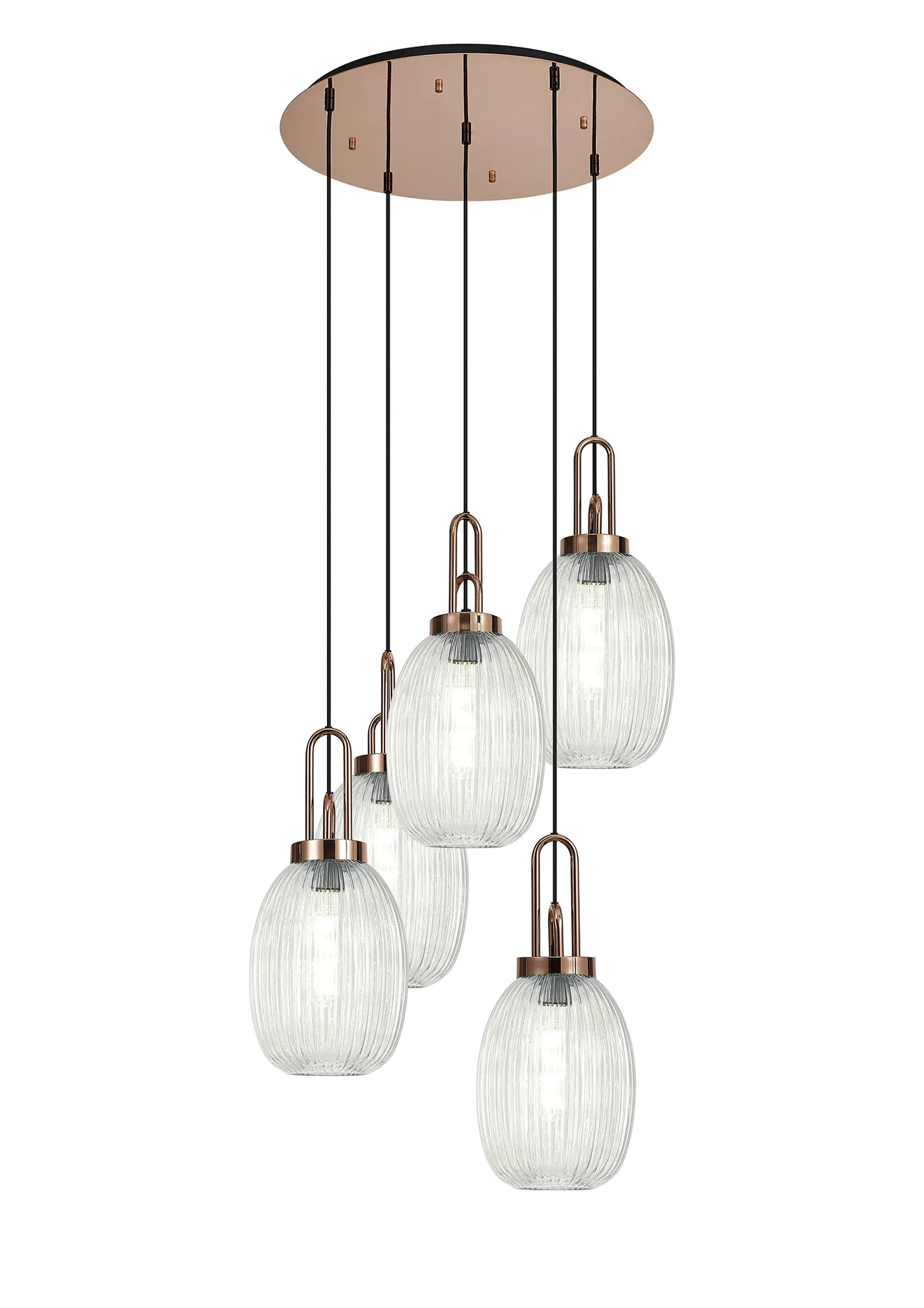 Kirby Round 5 Light Pendant With 20cm Tubular Ribbed Glass, Antique Silver/Matt Black Smoked