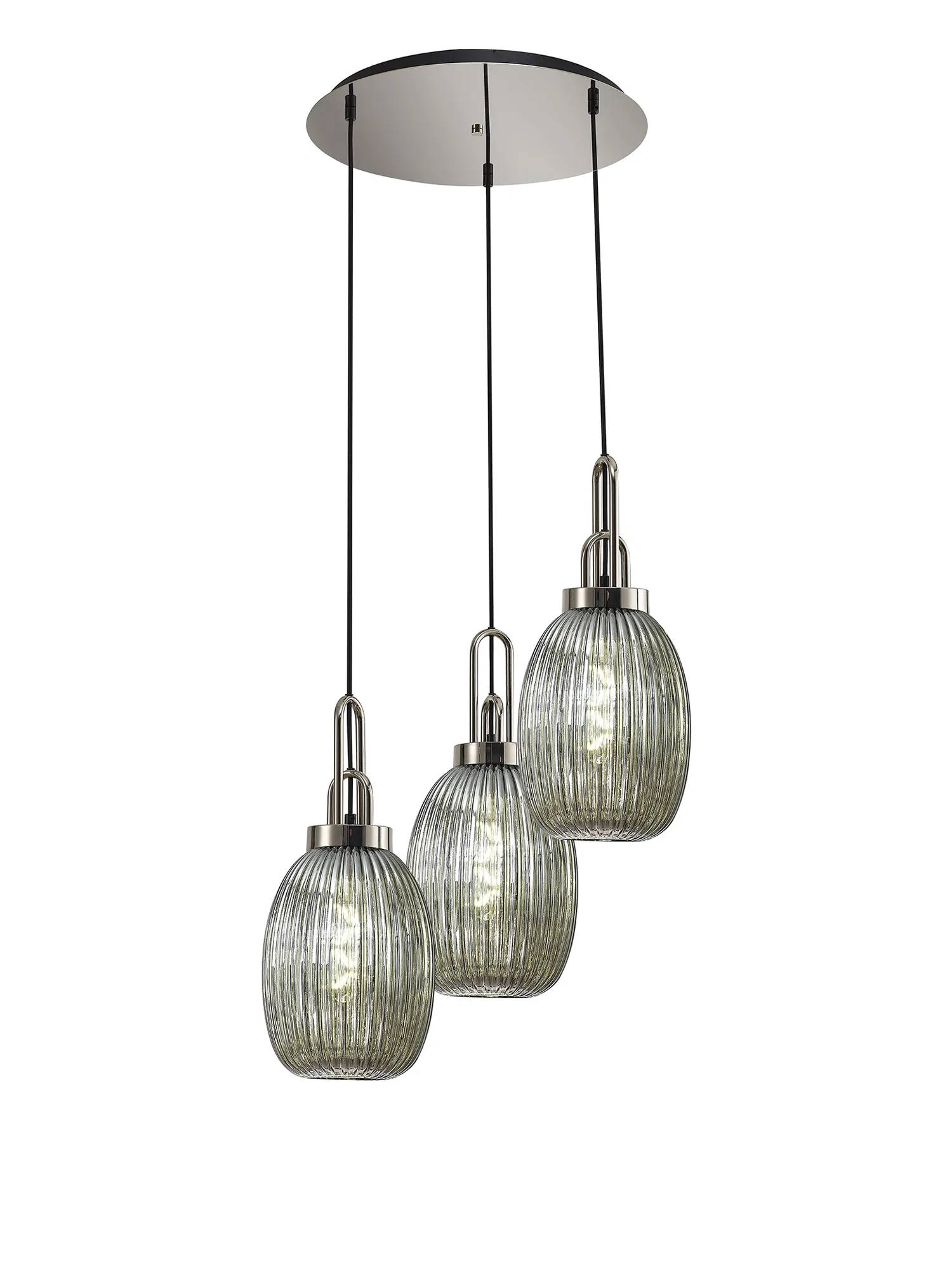 Kirby 2.5m Round Pendant, 5 x E27, Copper/Matt Black With 30cm Pumpkin Shaped Ribbed Champagne Glass