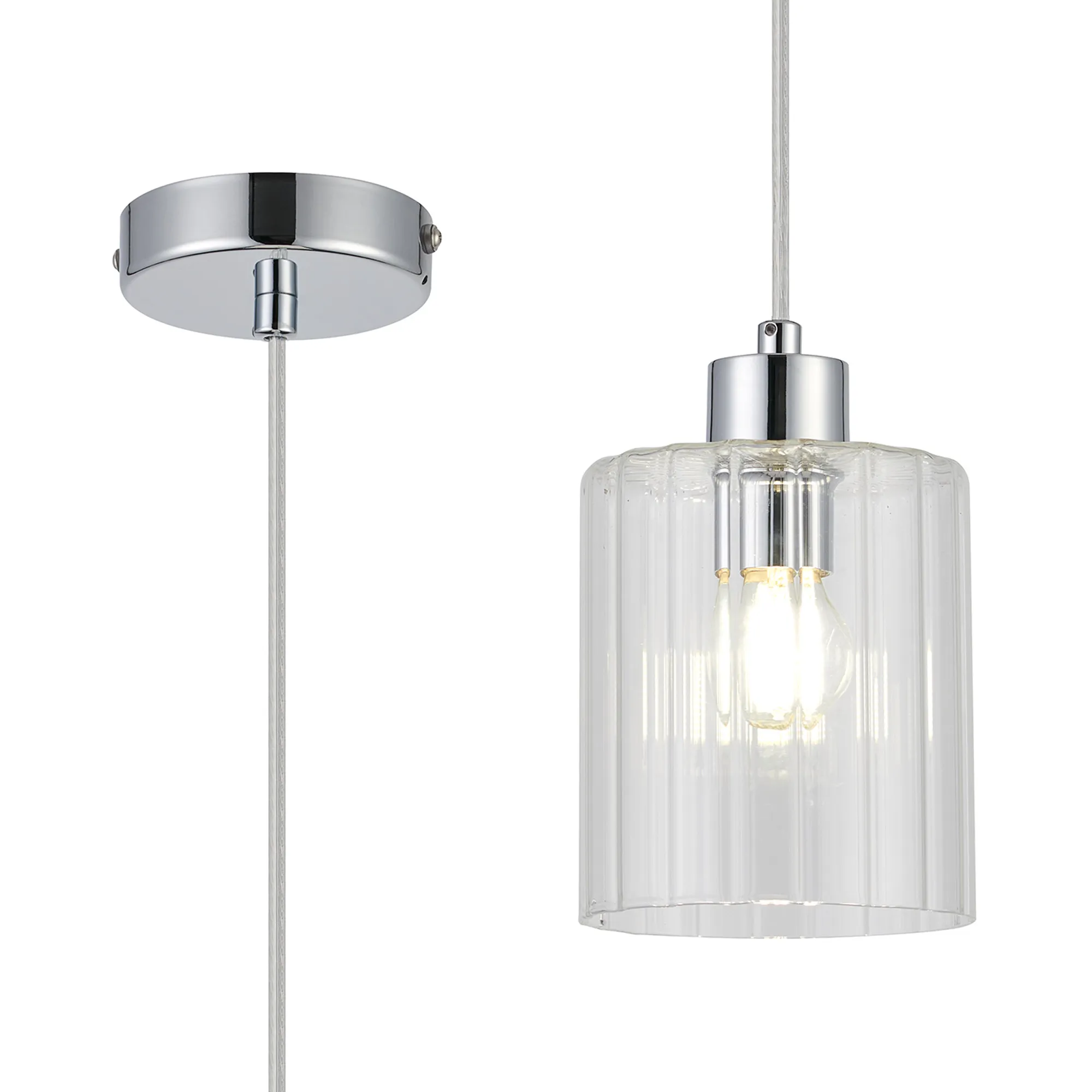 The Livingston range is made up of stylish pendants that combine aesthetics and functionality. These single one light pendants are available in satin black, bronze or polished chrome all with clear ripple glass pieces allowing you to select the option that complements your interior decor. The pendant's IP44 rated lamp holder cap ensures its suitability for bathrooms.