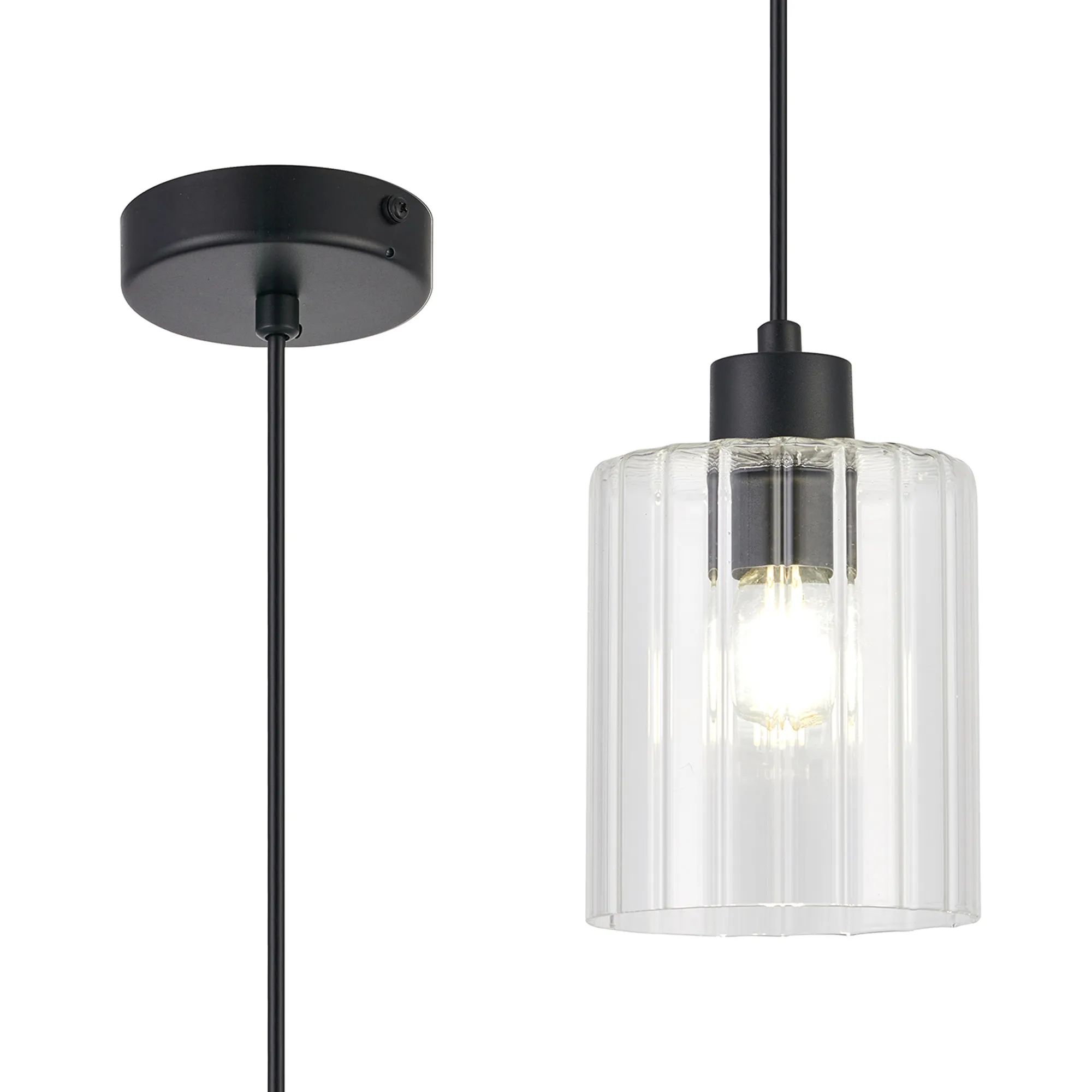 Livingston Pendant, 1 x E14, IP44, Satin Black/Clear Glass