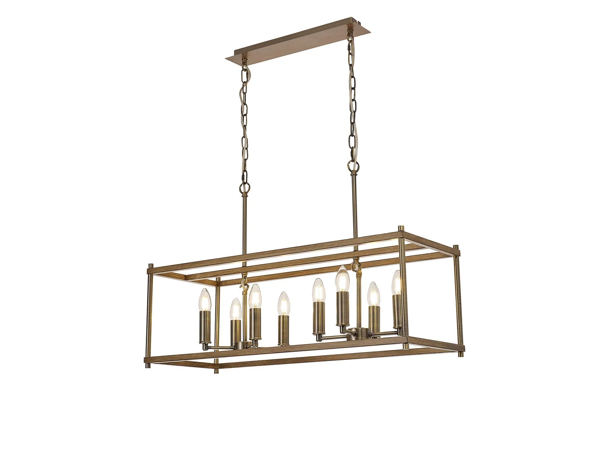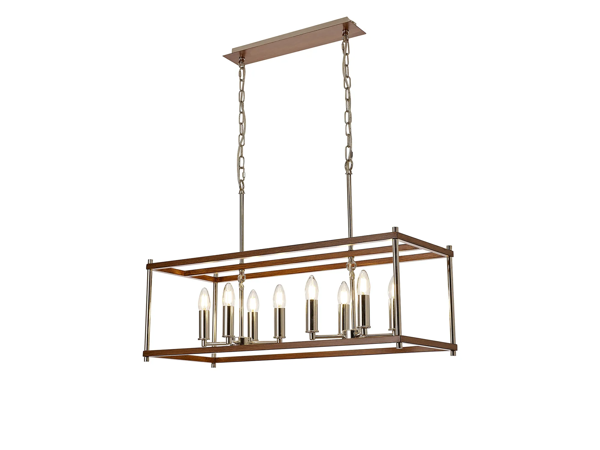 Moncton Linear Pendant, 8 x E14, Medium Oak/Antique Brass