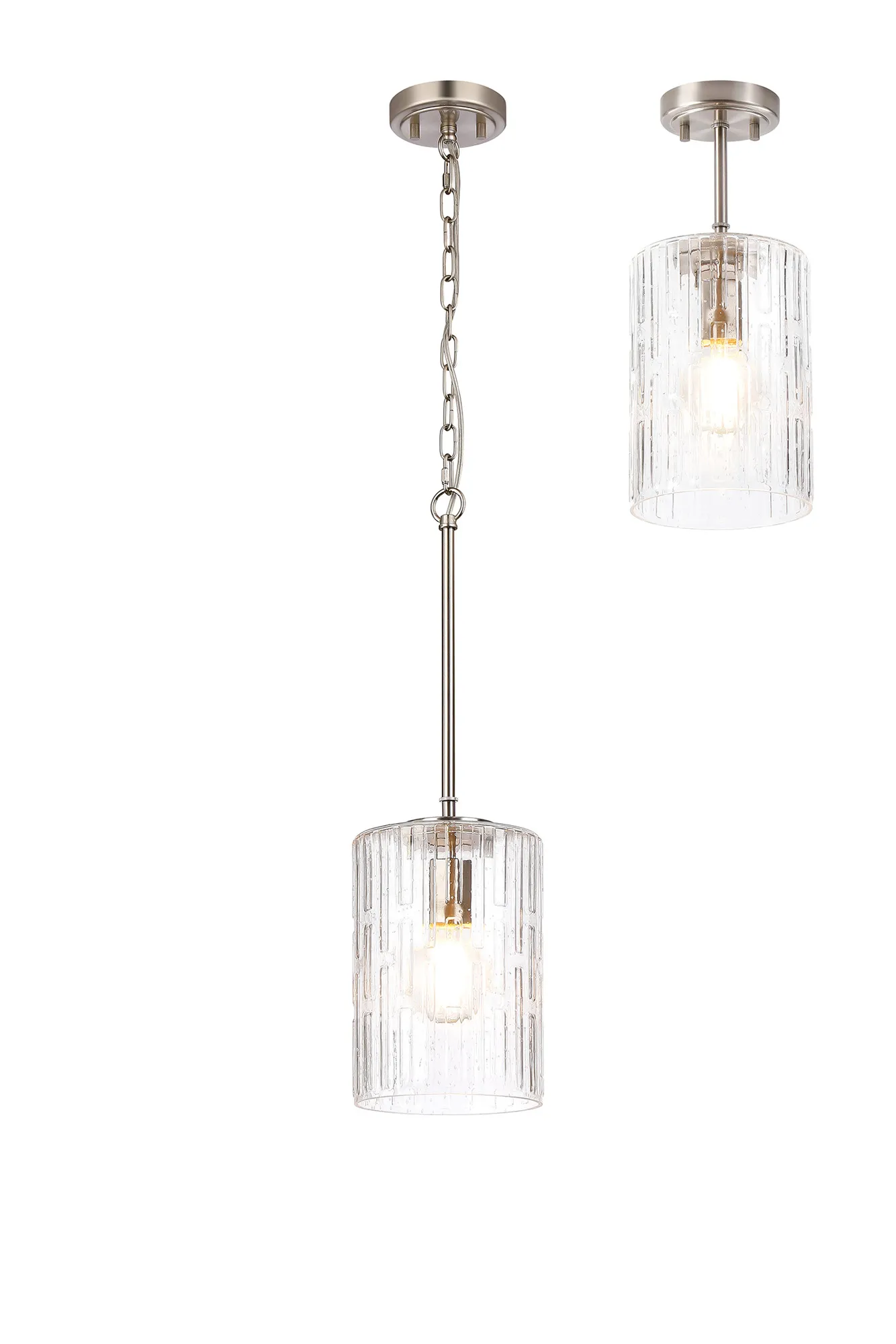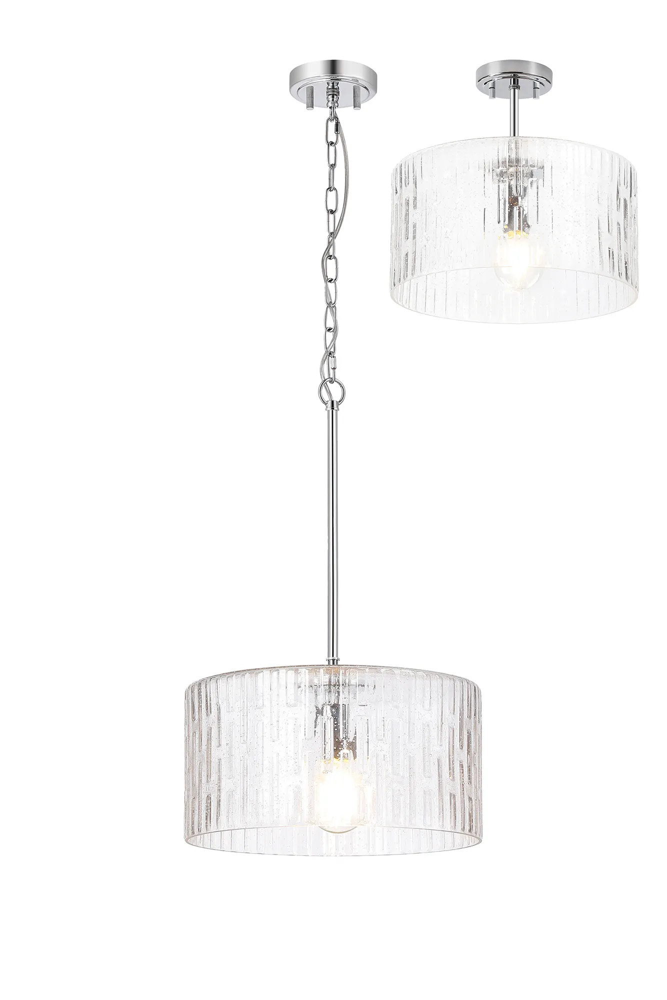 Parksville Polished Chrome Pendant/Semi Flush/Semi Flush 1 x E27 With Cylinder Ribbed Glass (A)