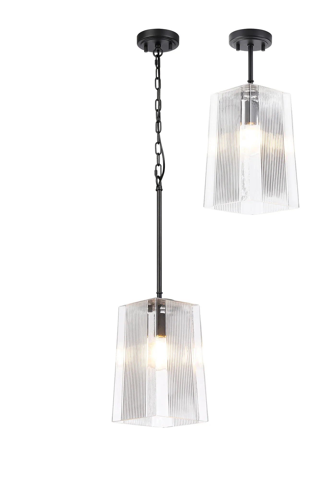 Parksville 18cm Polished Chrome Pendant/Semi Flush/Semi Flush 1 x E27 With Cylinder Ribbed Glass (A)