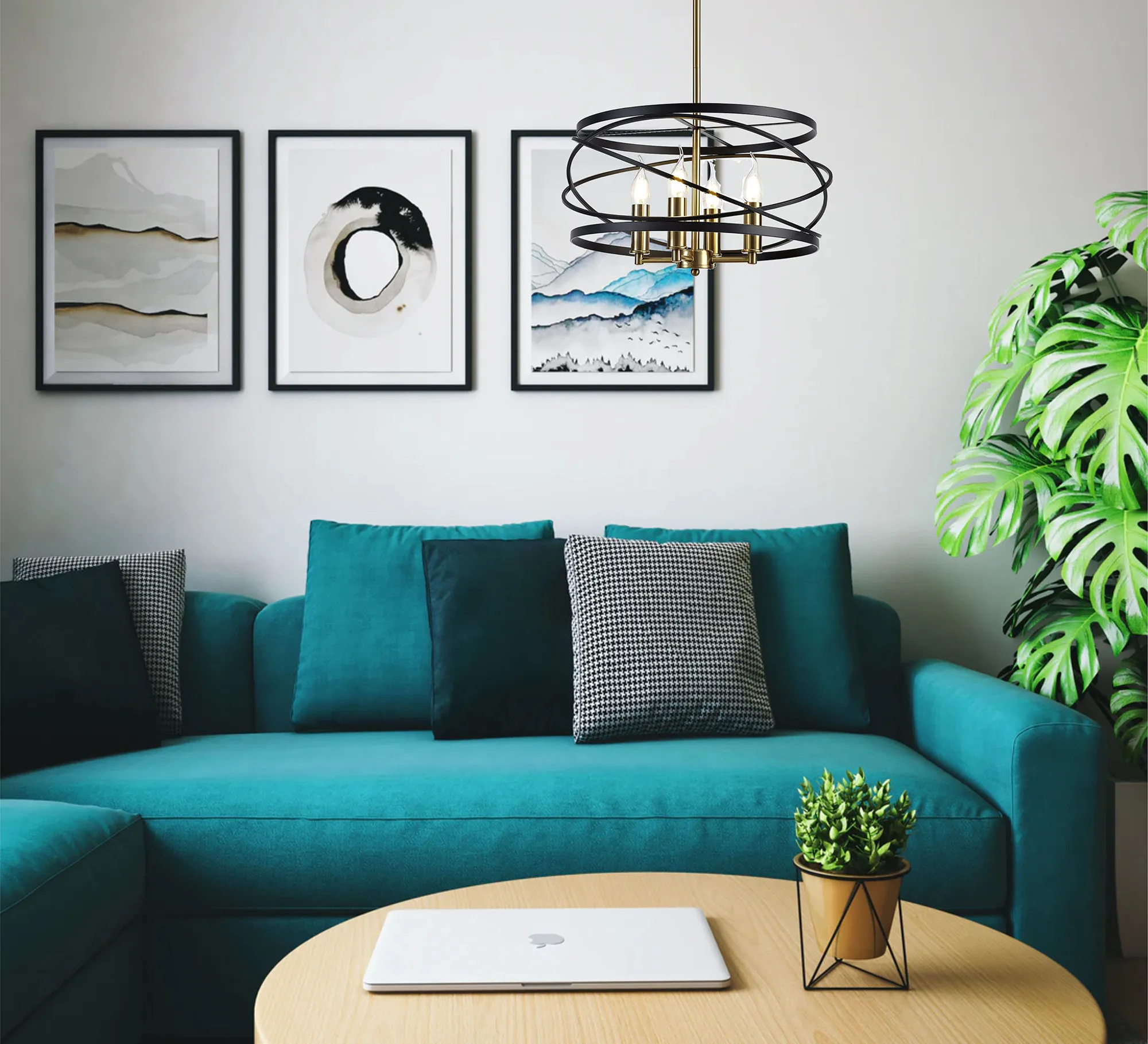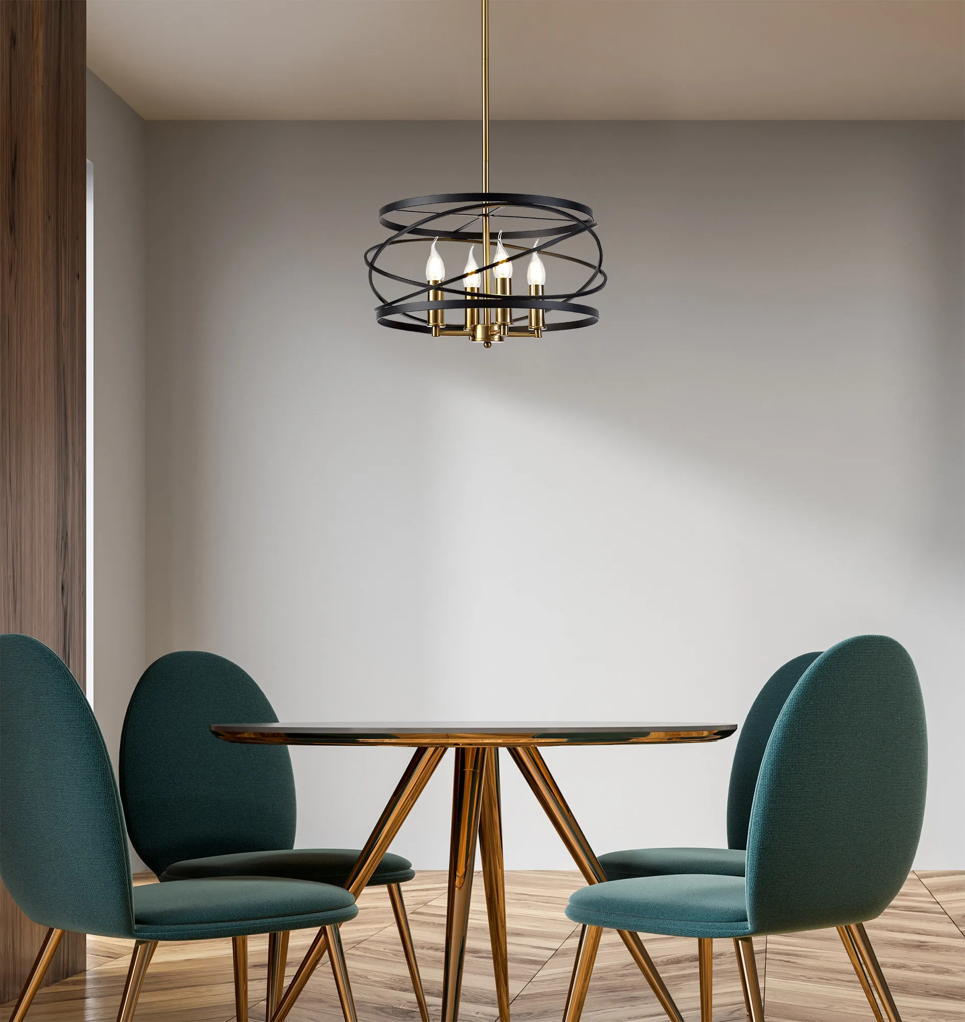 Pearson Pendant/Semi Flush, 4 x E14, Black/Satin Gold