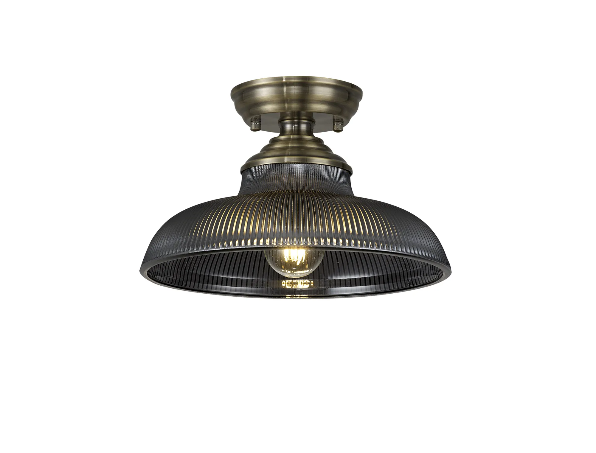 Quebec 2 Light Semi Flush Ceiling E27 With Round 30cm Glass Shade Matt Black/Amber