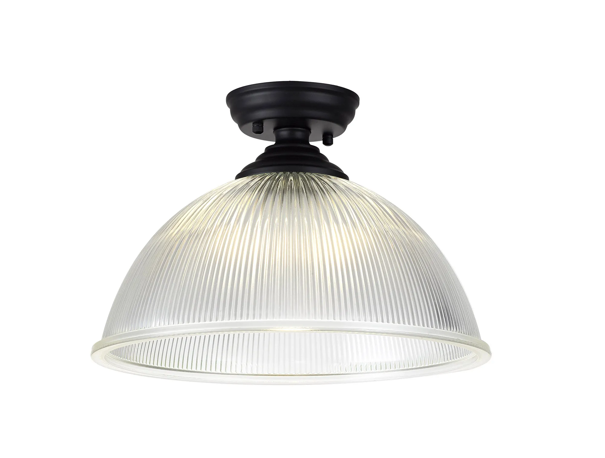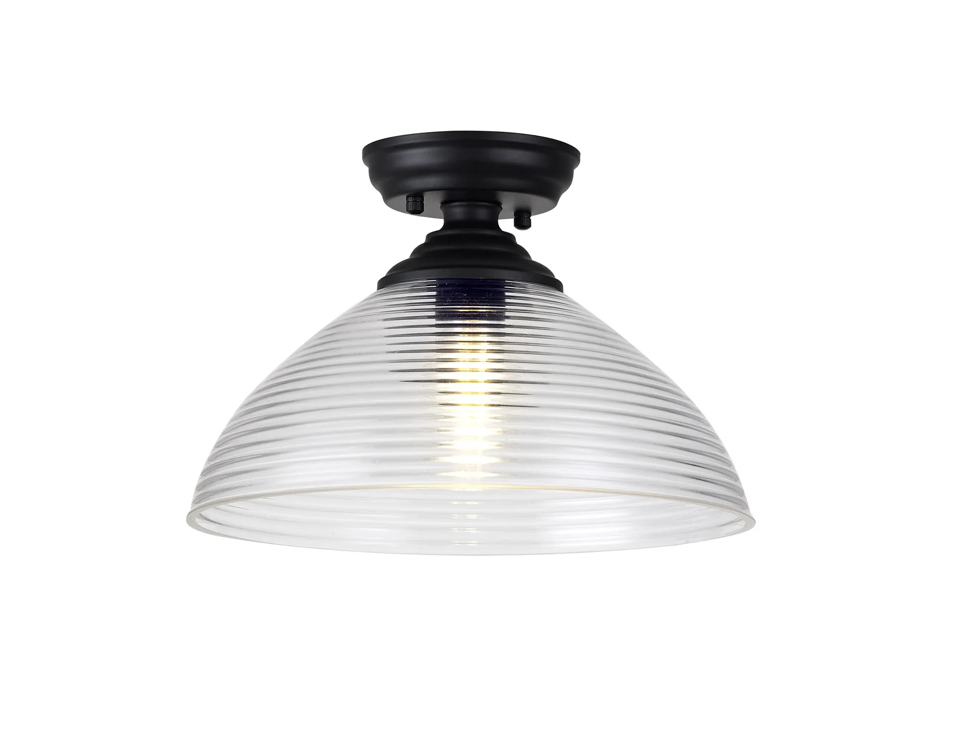 Quebec 1 Light Flush Ceiling E27 With Round 38cm Patterned Glass Shade Polished Nickel/Clear Item Weight: 5.6kg