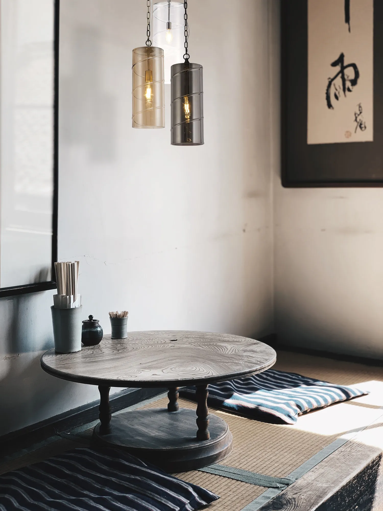 These cylindrical glass pendants present an inspired moulding creating a three dimensional spiral protrusion, extending around the shade. The three different frame colours available in the Ramsay range correspond the colour tint used for the glass itself; antique brass with amber glass, matt black with smoked glass or polished chrome with clear glass.