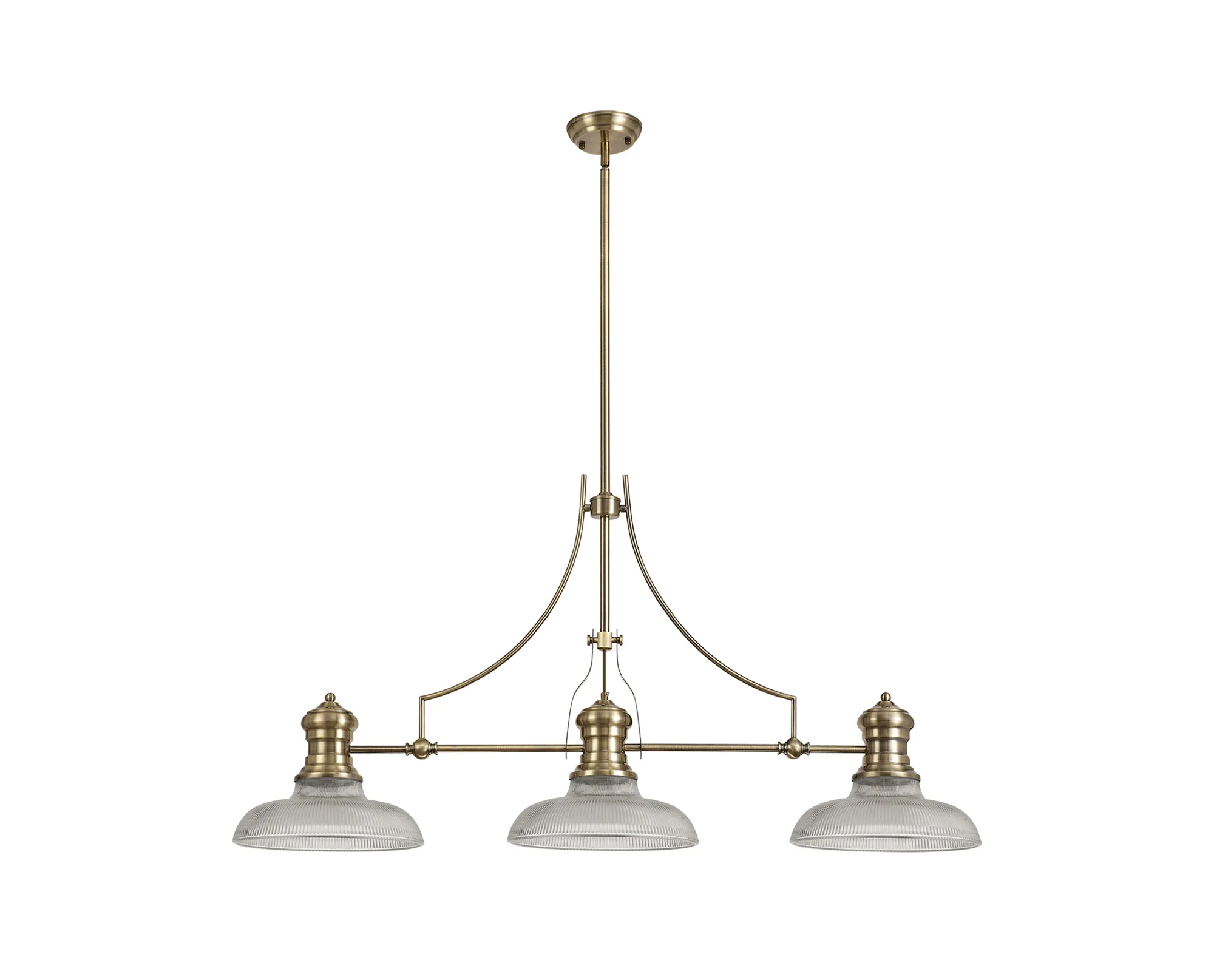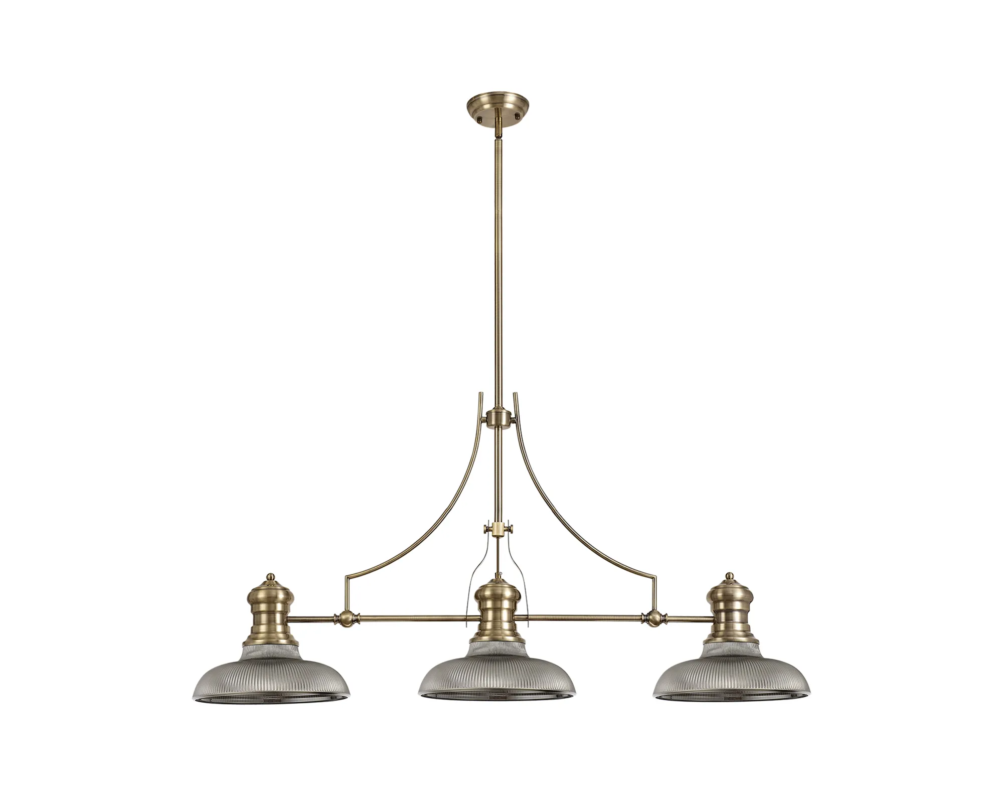 Snowdon 3 Light Linear Multi Height Pendant E27 With 30cm Round Glass Shade, Polished Nickel, Smoked